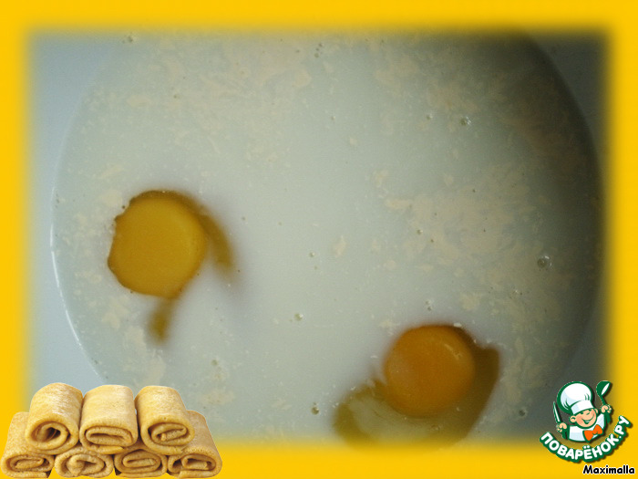 Молоко, яйца, растительное масло и сахар взбить венчиком.
