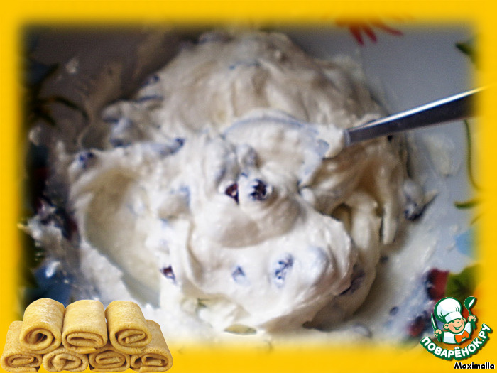 Приготовим начинку. В блендере измельчить творог со сметаной, сахаром и ванильным сахаром.