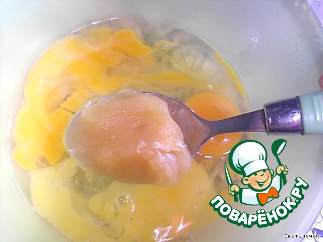Взбить яйца, мёд, соду и соль