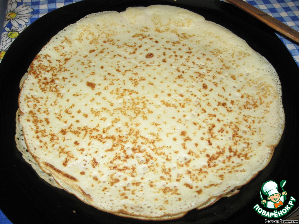 Взбиваем миксером яйца, соль, сахар, молоко, муку, растительное масло в однородную массу. Вливаем кипяток. Взбиваем.