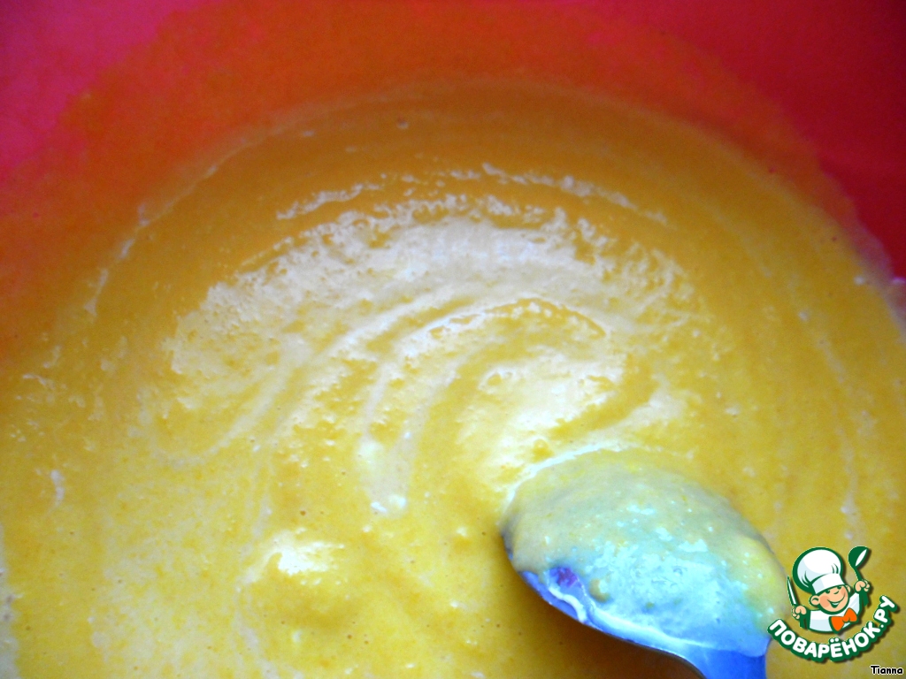 Затем добавить 1 ст.л. сахара, рисовое пюре и 0,5 стакана тыквенного пюре.