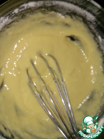 Готовим заливку. Взбить венчиком яйца, смешать сливки с грибным бульоном и влить в яйца, чуть присолить, в зависимости от того, насколько соленый сыр.