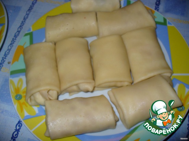 Завернуть начинку в блинчики.