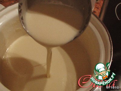 Затем добавить молоко, растопленное масло, взбитые белки и снова все тщательно перемешать.