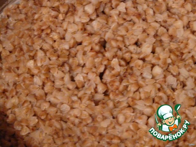 Сварить гречневую кашу. Хорошо бы, чтобы получилась переваренная. Можно варить на молоке или с добавлением молока. Кашу хорошо размять, не надо перемалывать ее в блендере.