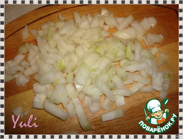 Лук и чеснок нарубите и обжарьте на растительном масле.
