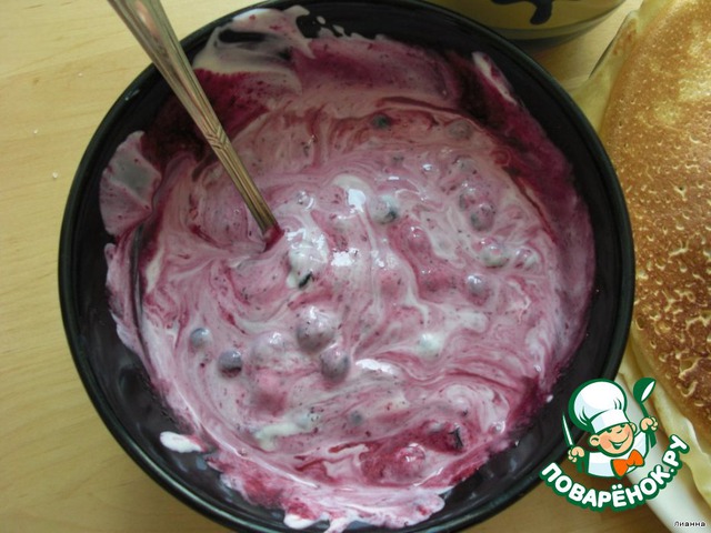 Готовим черничный соус №2 - к черничному соусу №1 добавить сметанку и перемешать.