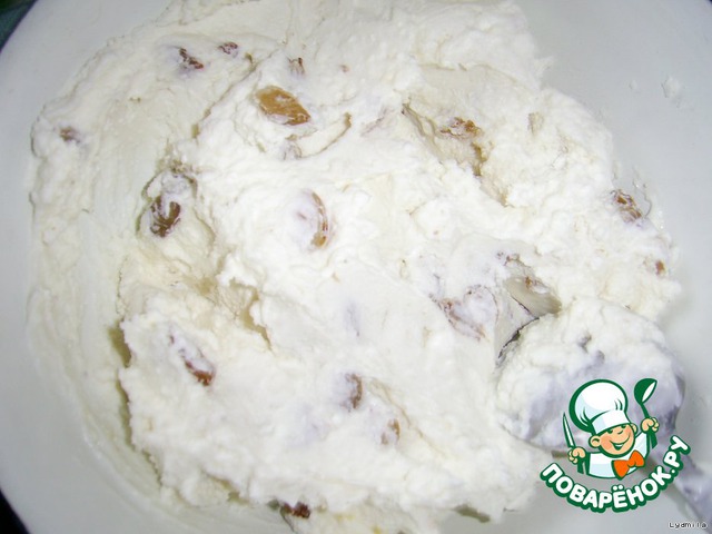 по желанию в творог добавить изюм и сахар(но не забывать о том,что блины уже сладкие)у меня была уже готовая творожная масса