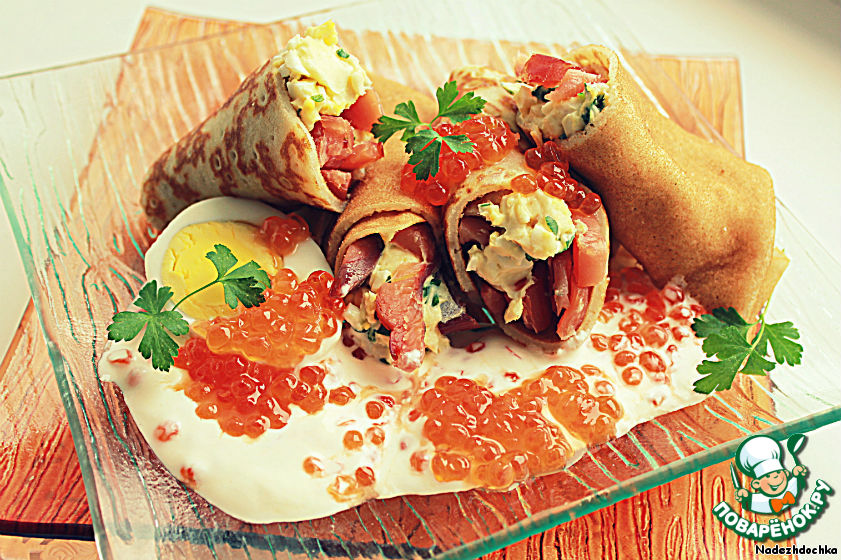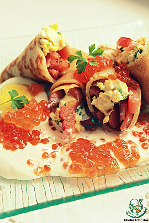Мягкий сыр с копченым лососем в блинчиках