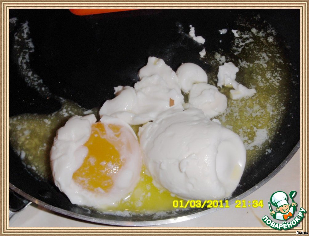[b]Начинка: [/b]Яйца,отваривать вкрутую, очистить, нарезать и немного обжарить в сливочном масле, посолить. Вкусно макать в эту начинку блины.