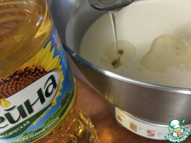 В тесто влить 3 столовой ложки подсолнечного масла ТМ " Олейна". Дать отдохнуть 15 мин.