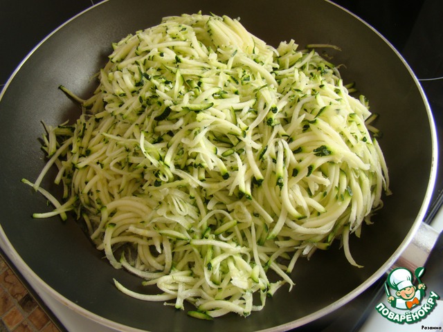Очистите кабачки, натрите их на терке, выложите на сковороду с растительным маслом, добавьте немного воды и потушите до мягкости, немного подсолите.