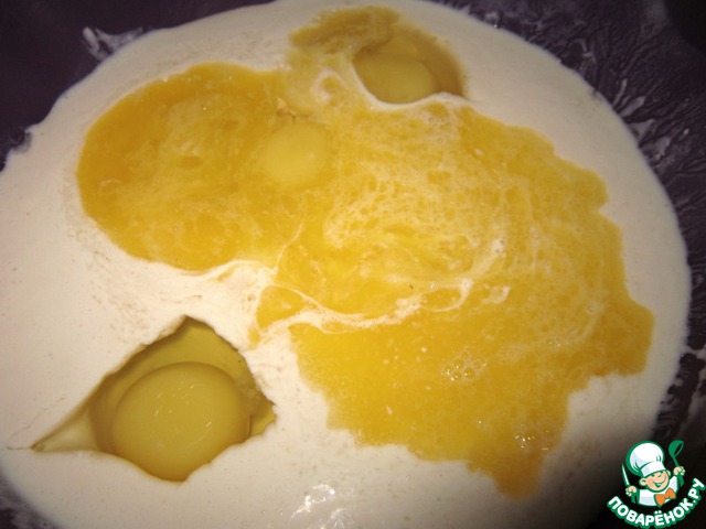 Добавить яйца, масло, оставшуюся сахар и соль.