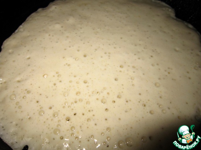 Теперь еще раз размешать и потихоньку вливать теплое молоко, пока консистенция не станет блинной.