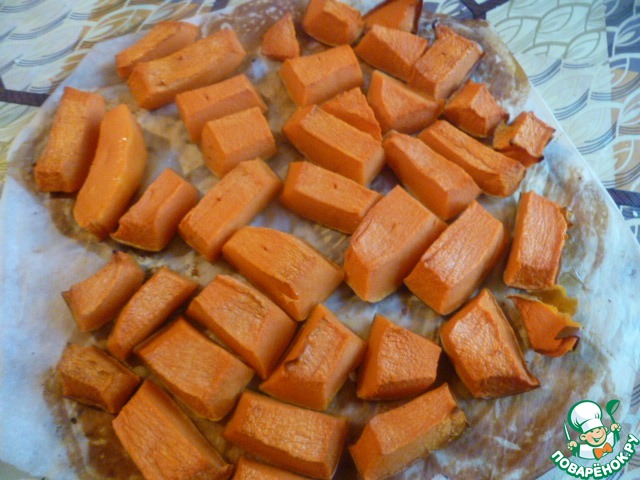 Для тыквенного пюре тыкву запечь в духовке при 180 градусах 45 минут до готовности.