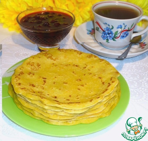 Тыквенно - миндальные блины подавать с вареньем или мёдом.
