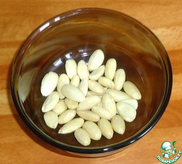 Миндаль залить кипятком и оставить на 30 минут, затем очистить.