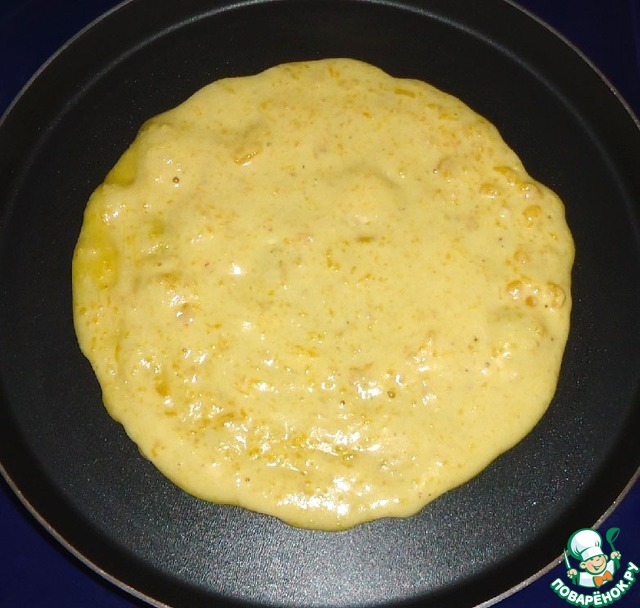 Разогреть сковороду, смазать растительным маслом, выложить тесто по 2,5-3 ст. л. на сковороду, разровнять.