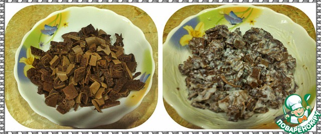 Обрезки из панкейков я порезала на квадратики и перемешала с кремом, это будет верхний слой тортика, чтоб выровнять поверхность для конфеток)))