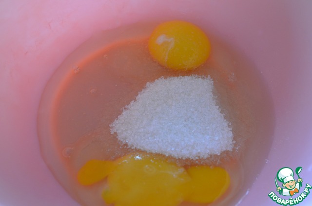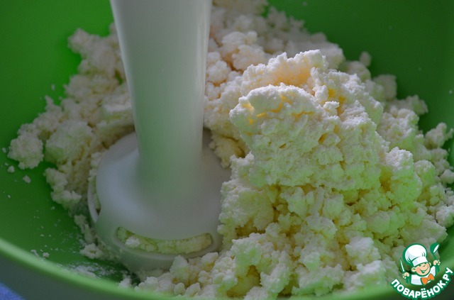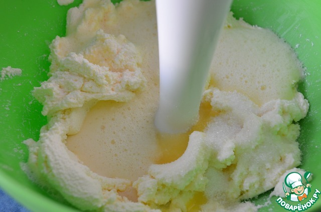К творогу добавляем взбитые с сахаром яйца, соль и ванильный сахар.