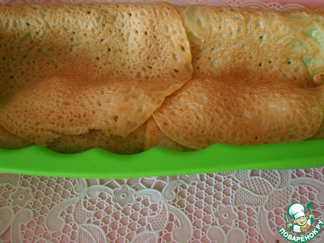 Блинчики вынуть из холодильника, аккуратно перевернуть на блюдо.