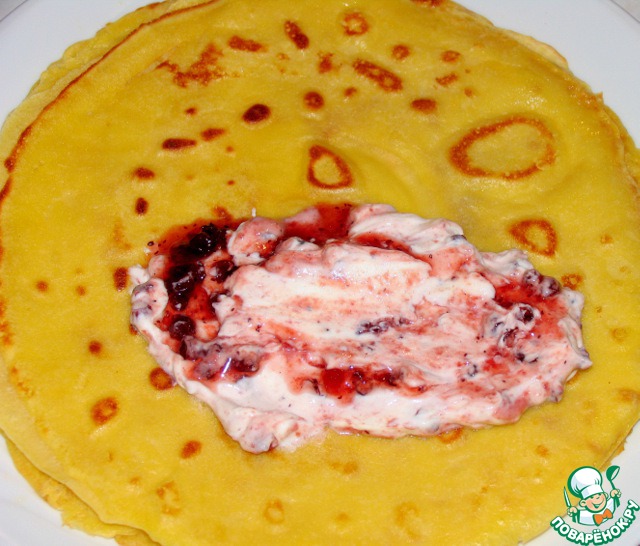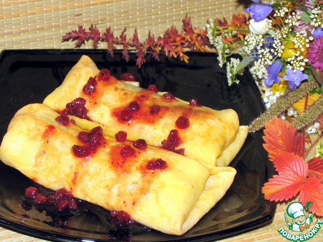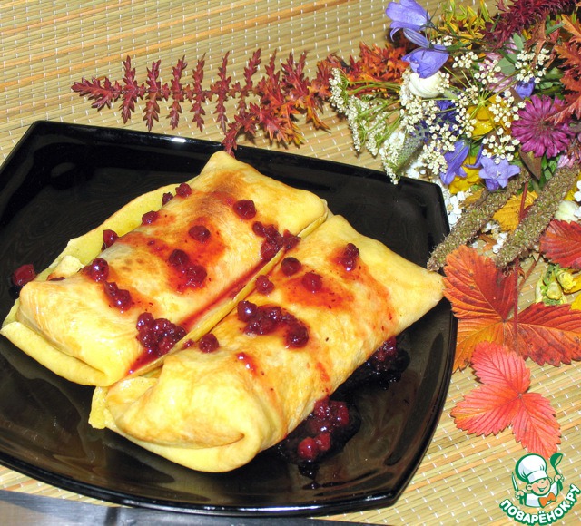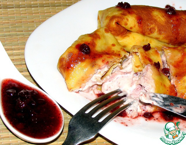 | Очень вкусные блины! Творог и брусника, начинка объедение! |