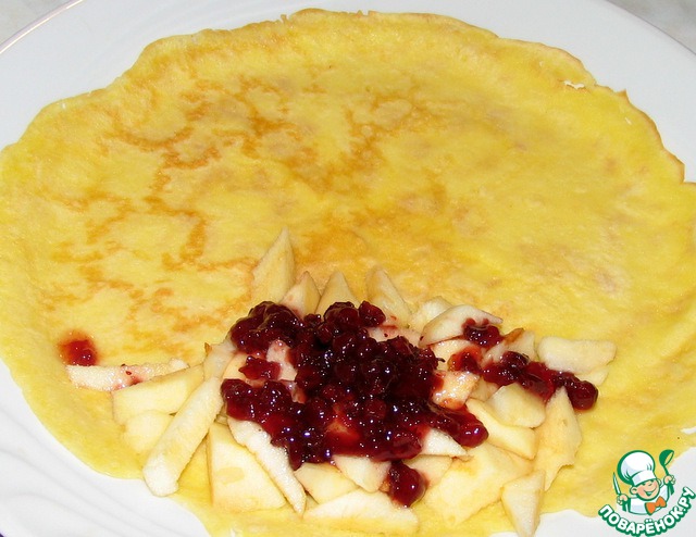 Для других трёх налистников я использовала свежие яблоки. 2 крупных яблока очистила от кожицы и убрала сердцевину. Не крупно нарезала, а сверху положила соус.