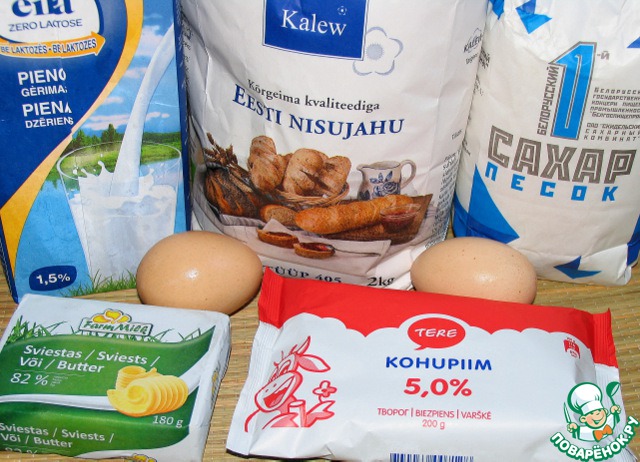 Творога у меня одна пачка ( 200 г, надо 400 ). Этой начинки мне хватило только на три налистника.