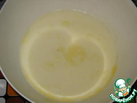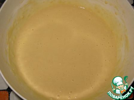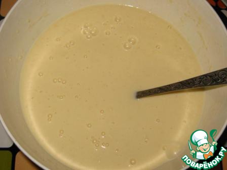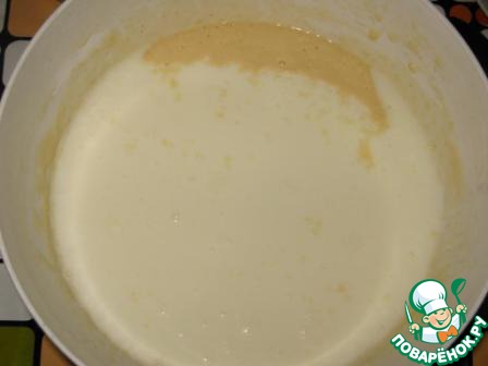 Добавить стакан подогретого молока и размешать.