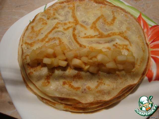 На сковороде на среднем огне тушить яблоки 10мин, добавить сахар и корицу. Потом остудить.