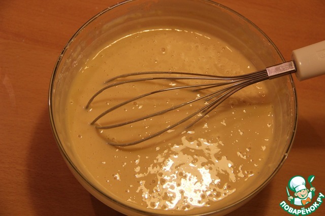 Добавить яйца, 100 мл молока, растопленное сливочное масло и хорошо перемешать.