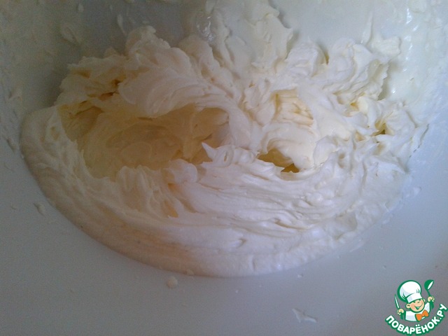 Сливки взбить с сахарной пудрой до густых пиков.
