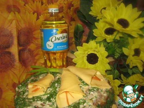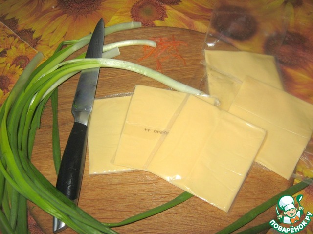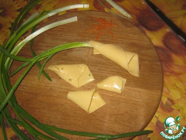 И начинаем формовать цветы, сворачивая сыр "кулёчком" и делая ножку из стебля лука