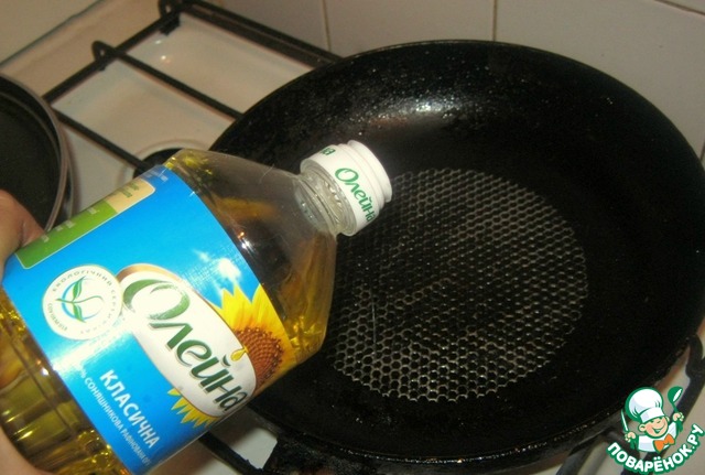 Сковородку смазываем небольшим количеством масла ТМ "Олейна"