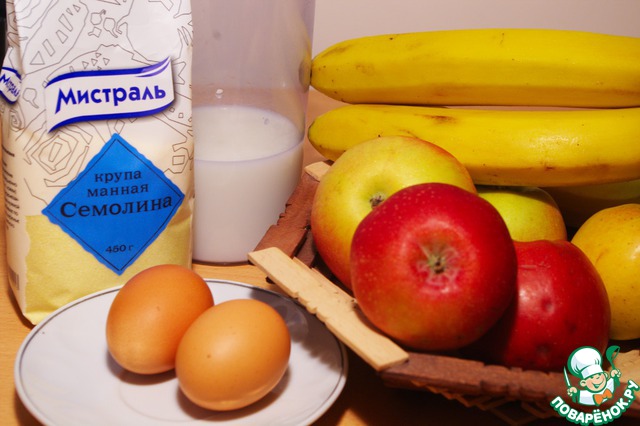 | Вкусный и нежный блинный пирог с яблочно-банановой начинкой для любителей блинов, яблок и бананов. Блины на манке толстенькие, с легким ароматом дрожжей в сочетании с сочной кисло-сладкой начинкой прекрасно подходят к ароматному чаю или кофе, для неспешной беседы. |