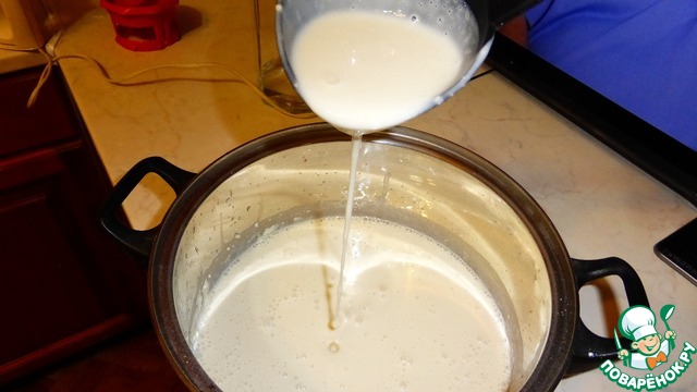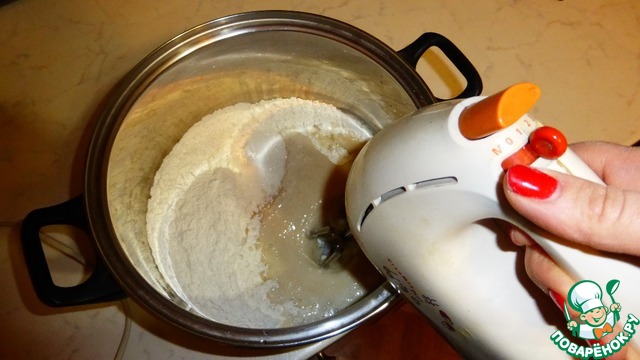 Добавлять воду нужно так, чтобы тесто получилось консистенция кефира.