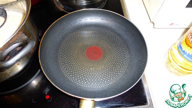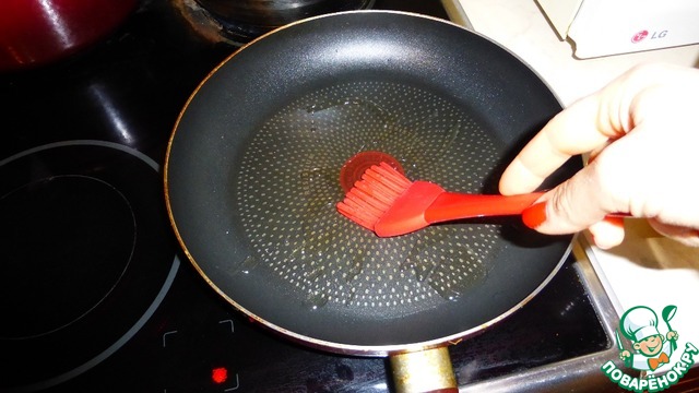 Теперь прогреваем сковородку. Добавляем масло.