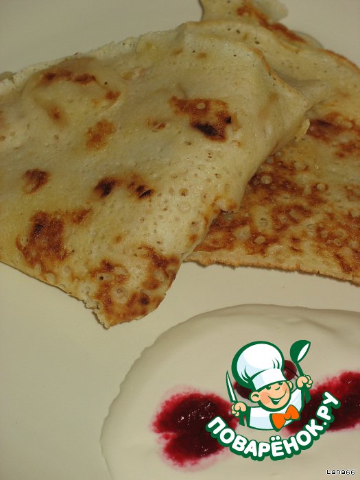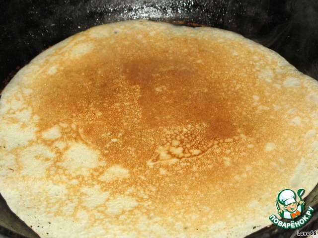 Выпекать блины на хорошо разогретой промасленной сковороде с двух сторон.