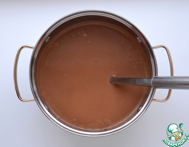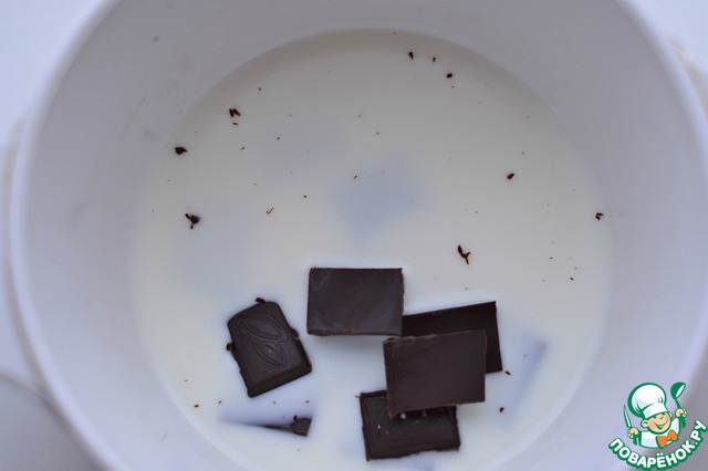 В 100 мл молока распустить шоколад (на водяной бане). Добавить какао-порошок. Размешать до однородности.