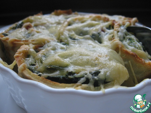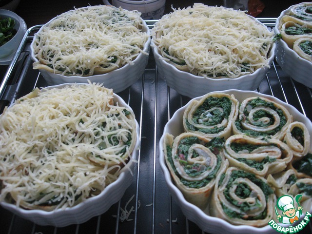 Блинчики-рулетики со шпинатом, запеченные в духовке