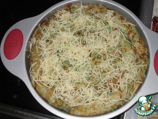 Обильно смазать каждый блин приготовленной начинкой и скатать в рулет. Выложить рулетики в круглую форму для запекания, складывая их "улиткой" по кругу. Посыпать сверху тертым пармезаном. И выпекать в разогретой духовке 180°С 20 мин.