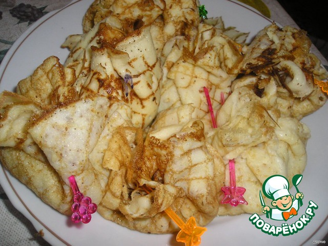 И сколоть - собрать края шпажками или зубочистками. Говорят, что для удачных блинов сковороду не моют, а лишь вытирают насухо. Здорово, если есть отдельная - блинная. Вспоминаю своего знакомого, который жаловался на жену: "Я - русский человек! Я блинов хочу!", улыбаюсь и почаще жарю блинчики.