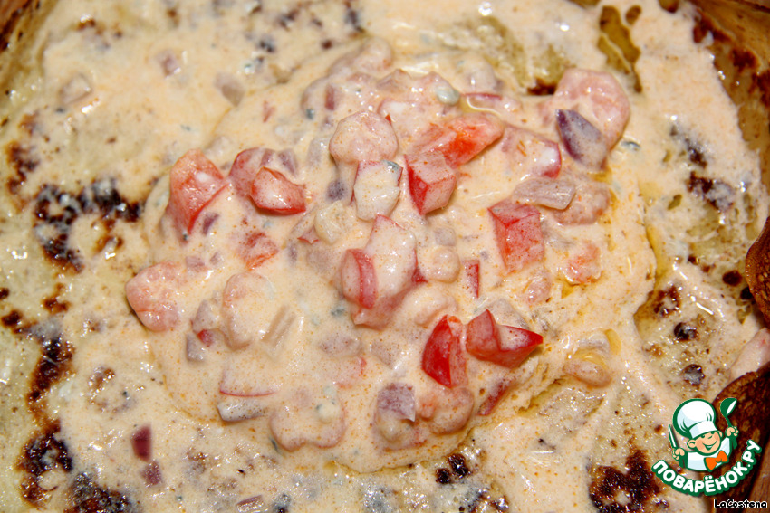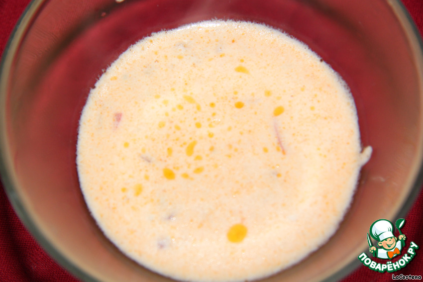Готовую смесь делим на 2 части – соус выливаем в отдельную пиалу.