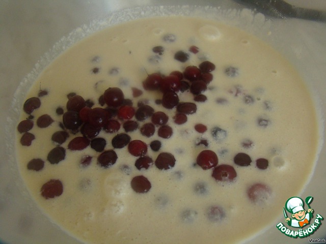 7.Клюкву аккуратно смешать с тестом.