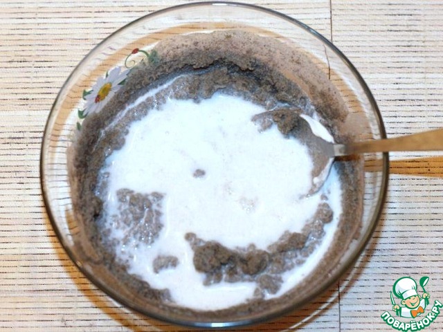 Смешиваем рисовую муку с кефиром. Вводим кефир понемногу и перемешиваем.