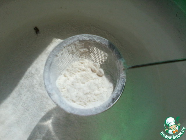 1 стакан муки просеять.=)