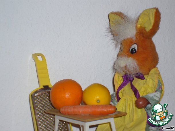 Приготовление начинки. Для приготовления начинки выложить на стол апельсин, лимон, небольшую морковь и 4 ст. ложки сахара.