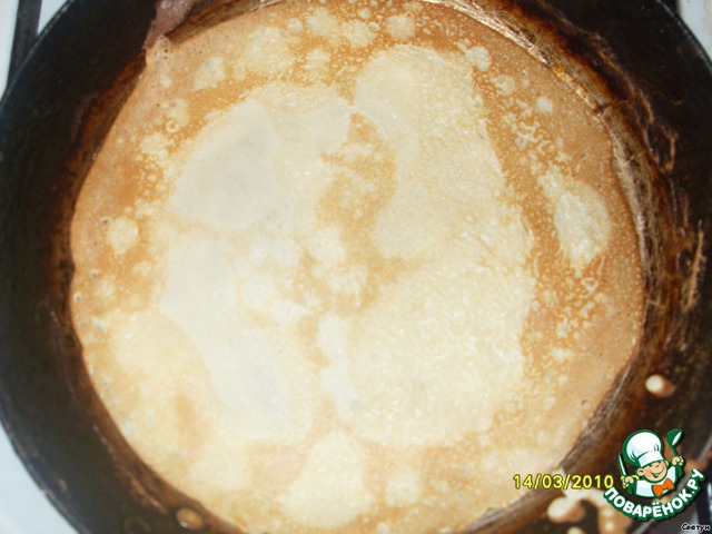 На раскаленной сковородке, смазанной растительным маслом испечь блинчики.