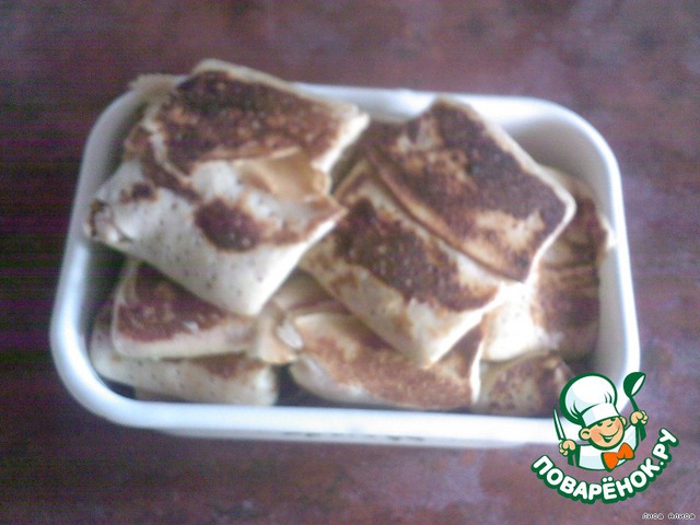Печь блинчики, обжаривая с двух сторон (со второй чуть-чуть).