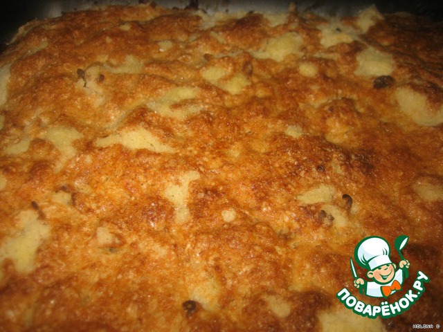 Пирог получился с хрустящей корочкой карамели снаружи...